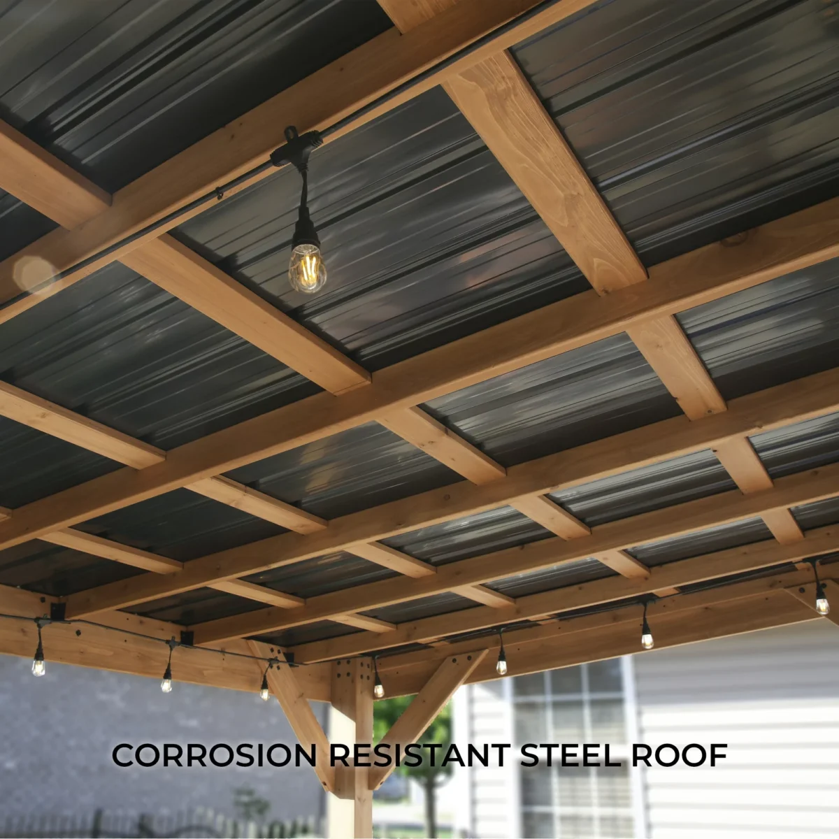 - Heavy Duty Roof: 29-gauge black steel roof offers dent and corrosion resistance.