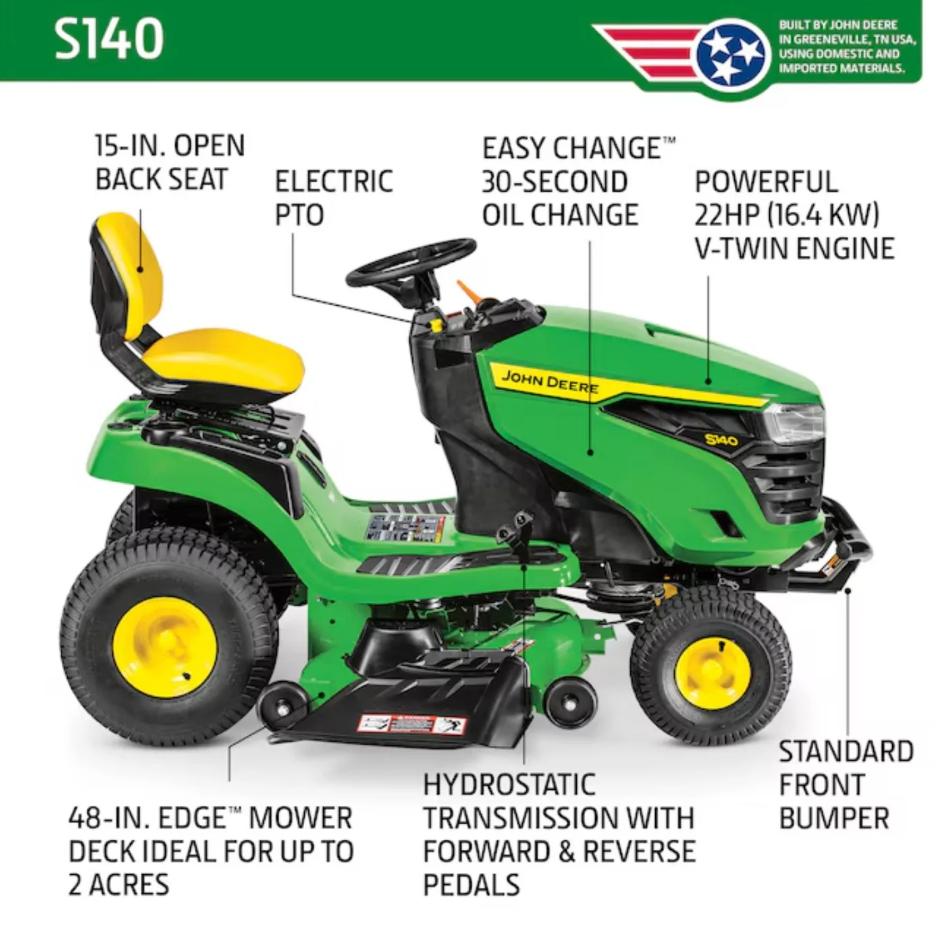 John Deere S140 48-in Riding Lawn Tractor – Proven Performance, Built to Last