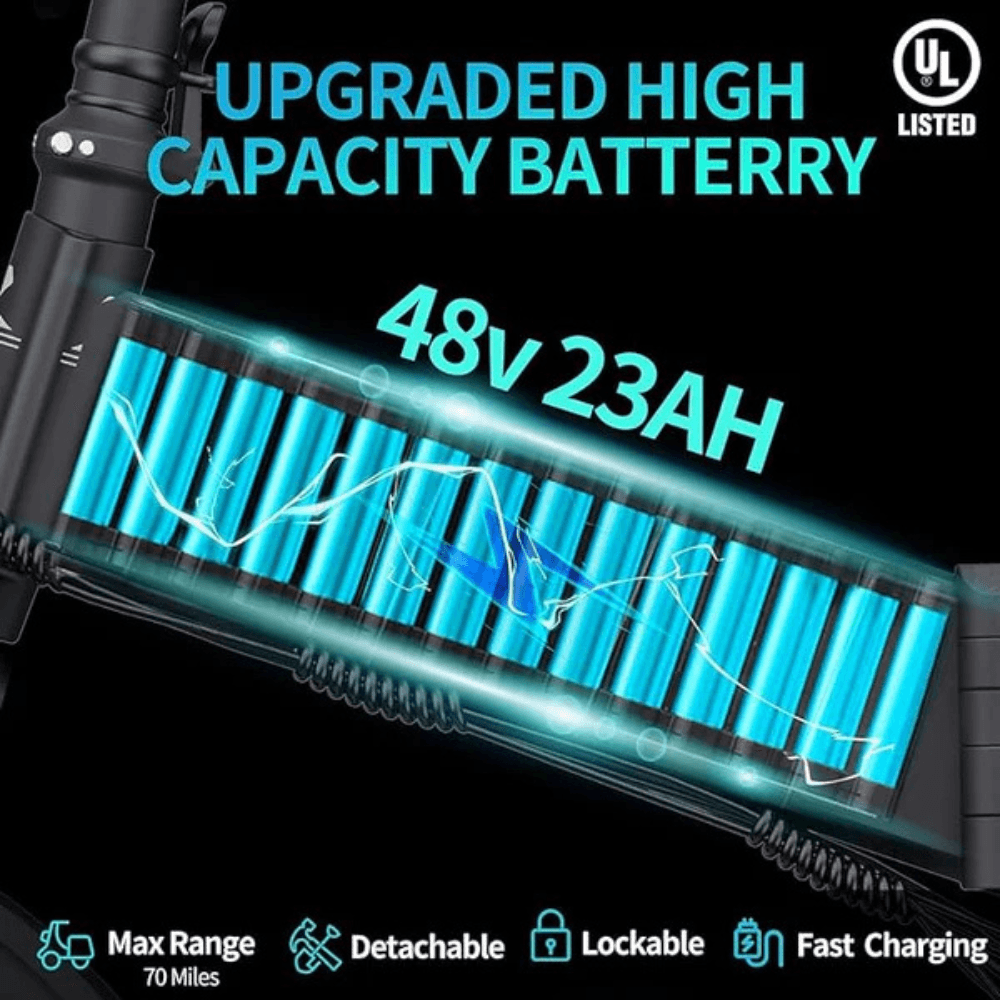 - Folding Frame: The quick-fold mechanism makes it effortless to collapse and carry your e-bike, perfect for urban lifestyles or storage in tight spaces.