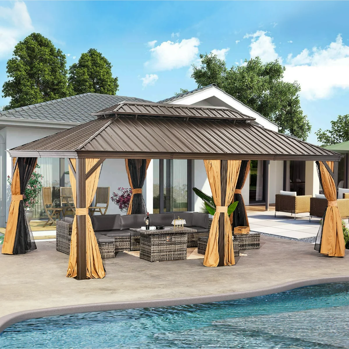 The Sunmthink 12×20 ft Hardtop Gazebo is designed for durability, style, and year-round functionality. Constructed with steel and aluminum coated in waterproof, rust-resistant powder, it stands up to outdoor weather conditions for years. Its spacious 10-foot-tall interior is perfect for hosting parties, barbecues, and outdoor gatherings—making it an elegant addition to any backyard.